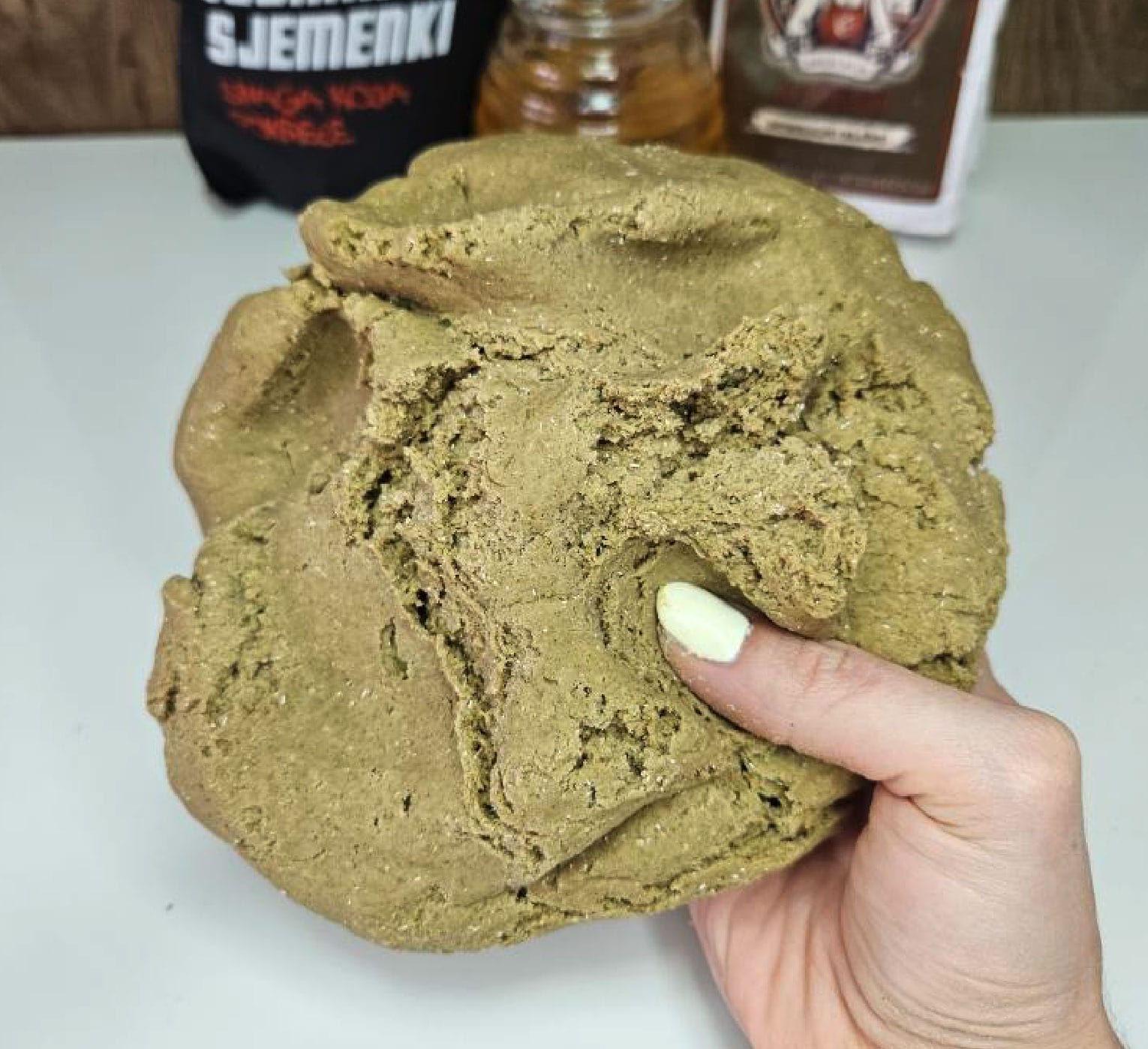 2. Dodaj med i mlaku vodu. Miješaj sve sastojke dok se ne formira tijesto. Trebalo bi biti mekano, ljepljivo, ali ne previše tekuće.