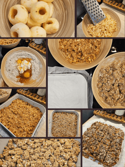 1. Oguli jabuke i naribaj ih na krupno. Dodaj cimet i med i promiješaj.