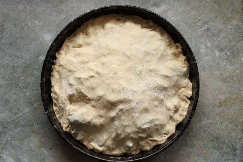 Tijesto podijeliti na dva dijela, tako da namjerno jedan dio bude nešto manji od drugog (od manjeg dijela ćemo složiti donji sloj soparnika, a s većim ćemo preklopiti nadjev). Polovice zasad ostavimo sa strane da malo odmore, dok pripremamo nadjev.