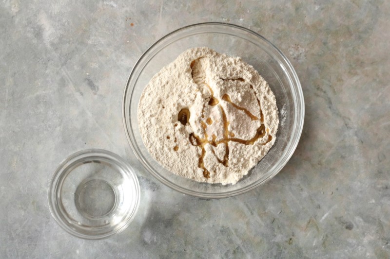U posudi pomiješati pirovo brašno dodati malu žličicu soli, 2 žlice maslinovog ulja i postepeno dadavajući malo vode (oko 1/2-1 šalice) zamijesiti tijesto. Tijesto je gotovo u trenutku kada postane mekano i više nije ljepljivo!